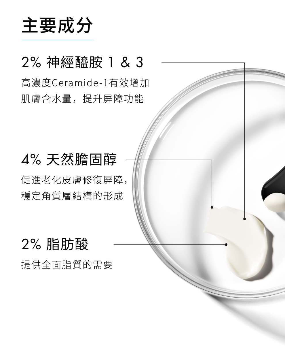Aging skin is increasingly susceptible to lipid depletion: the loss of natural compounds in skin’s surface, present in the form of ceramides, natural cholesterol, and fatty acids. This lipid loss compromises skin’s natural protective barrier, resulting in visible signs of accelerated aging, as skin loses its ability to effectively self-repair.