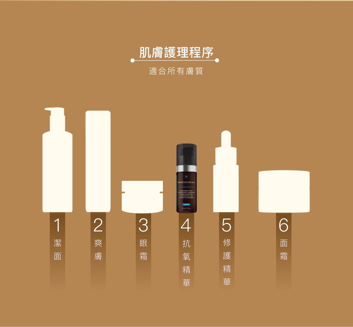 晚上潔面及爽膚後,使用1 – 2泵塗上面部和頸部,再塗抹SkinCeuticals的其他產品。