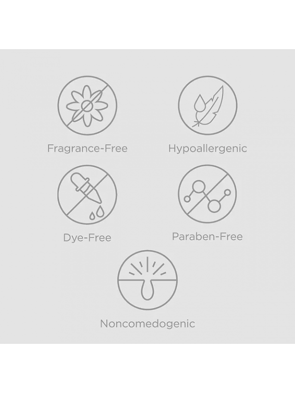 EltaMD UV Restore 不含染料、不含香料、不含麩質*、不含油、不含對羥基苯甲酸酯、無敏感性、不會引致粉刺、皮膚科醫生測試。